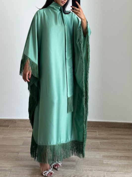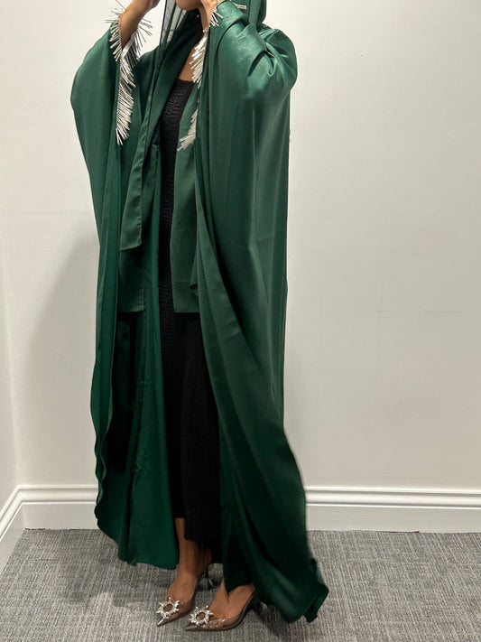 RTW Mona Beaded Fringe Abaya - Emerald Green