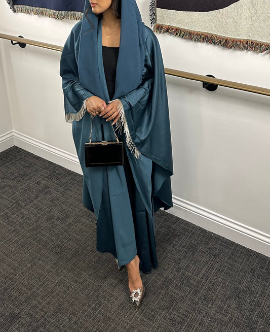 RTW Mona Beaded Fringe Abaya - Midnight Blue
