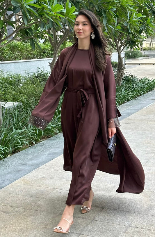 RTW Jawhara Abaya Set - Cocoa Bean