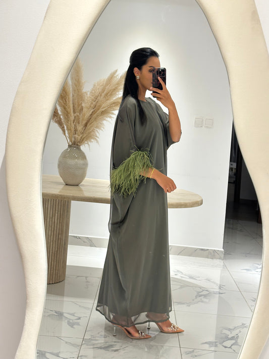 Sold outRTW Jamila Feather Kaftan - Burgundy