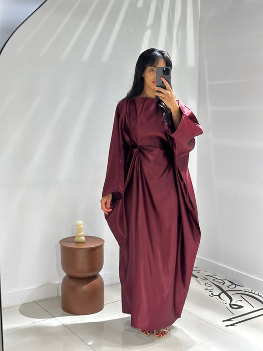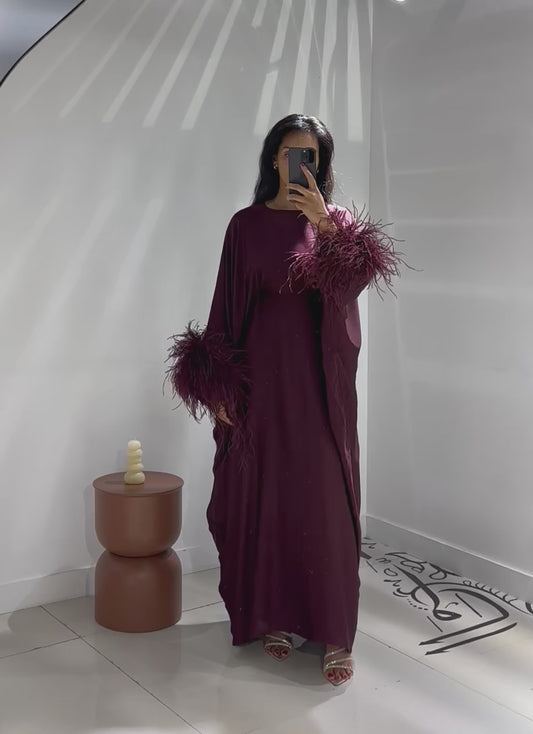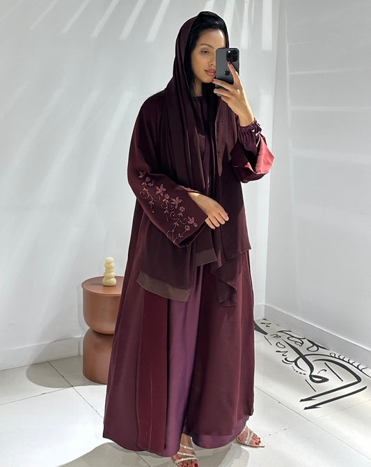 RTW Inayah Velvet Lace Abaya Set - Burgundy