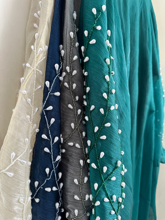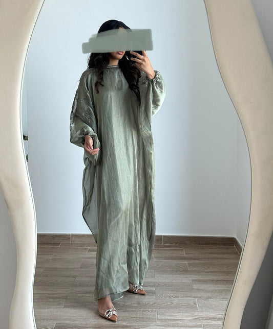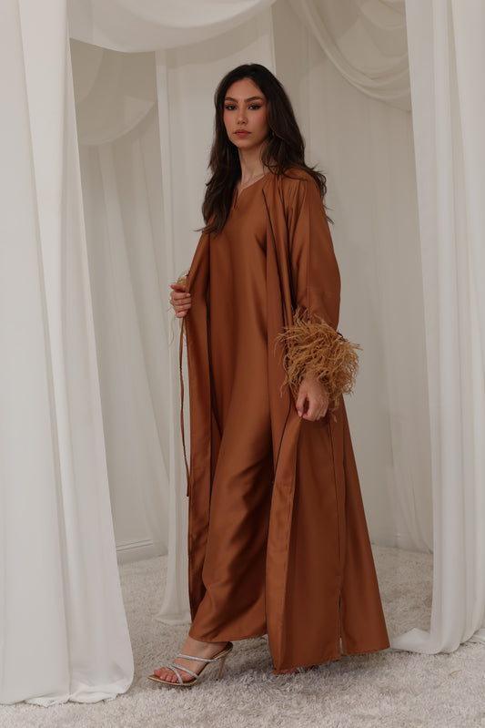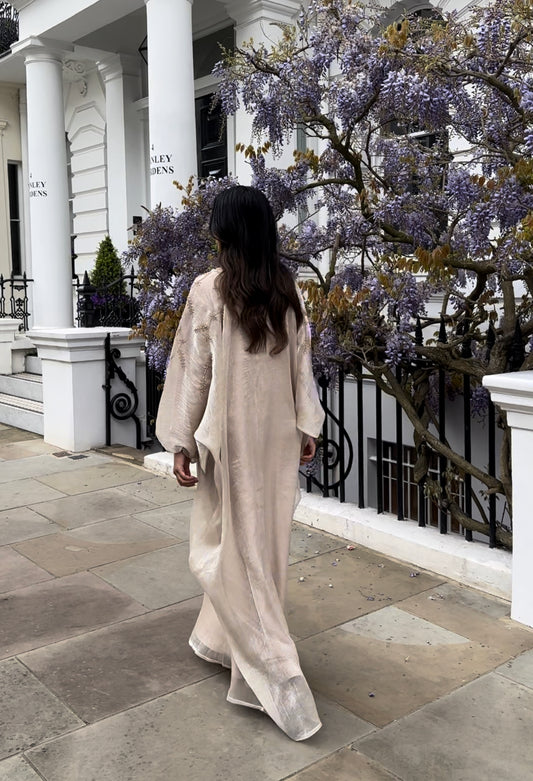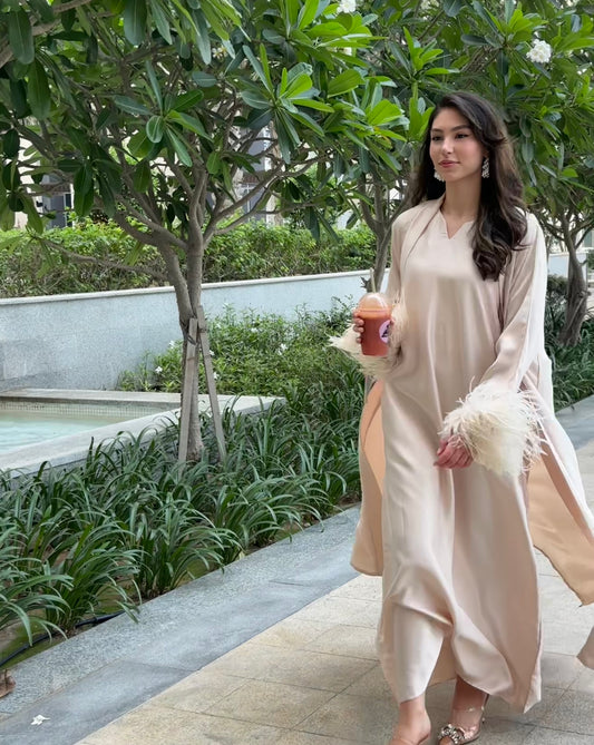 RTW Farasha Feather Kaftan - Off white/Cream Feathers