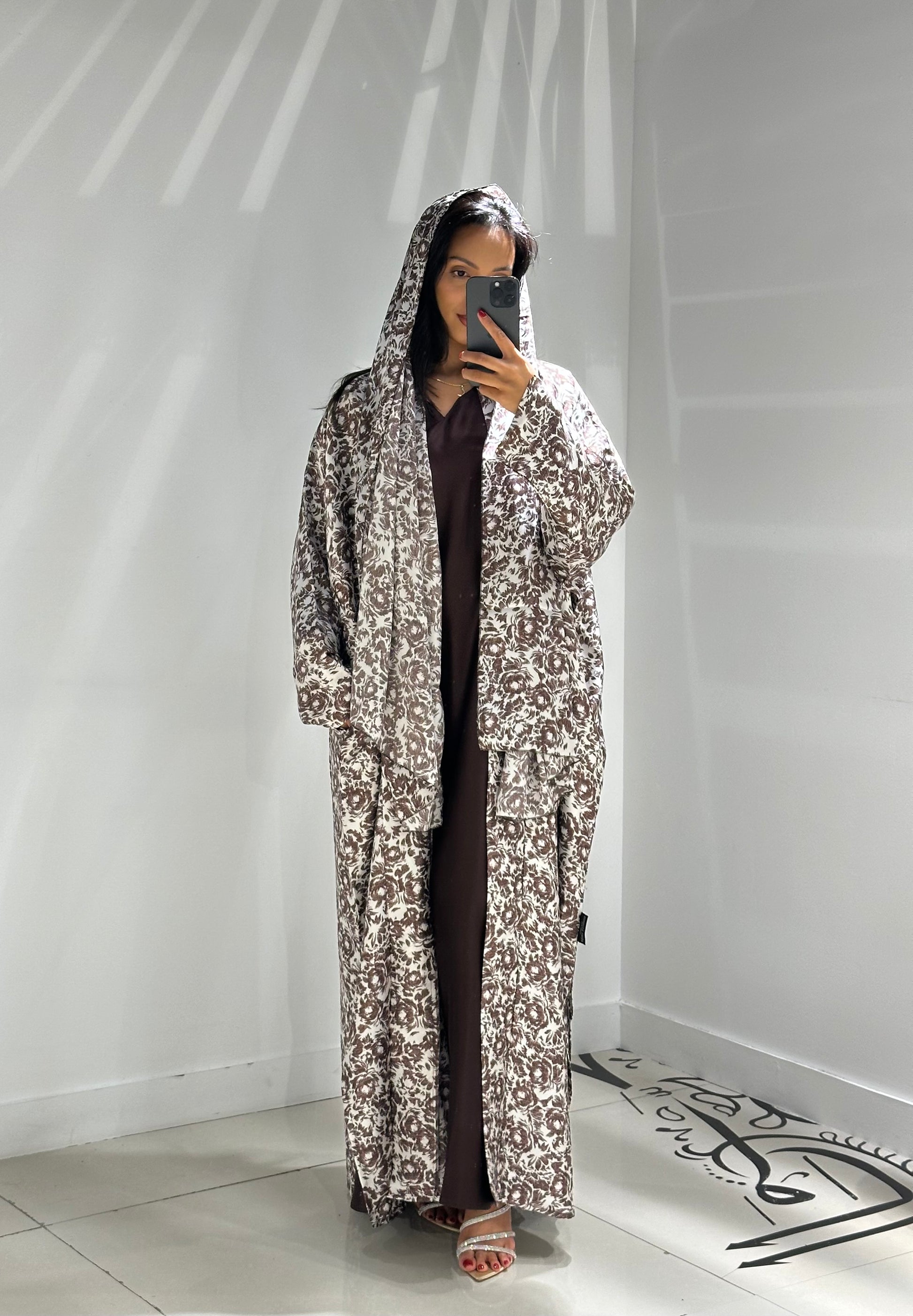 Please refer to our sizing guide to choose the length that suits your preference. The width of our abayas are typically free size, with inner belts or separate belts available for additional shaping and styling. These thoughtful and intentional designs allow the abaya to adapt to your changing body shape throughout various life milestones.