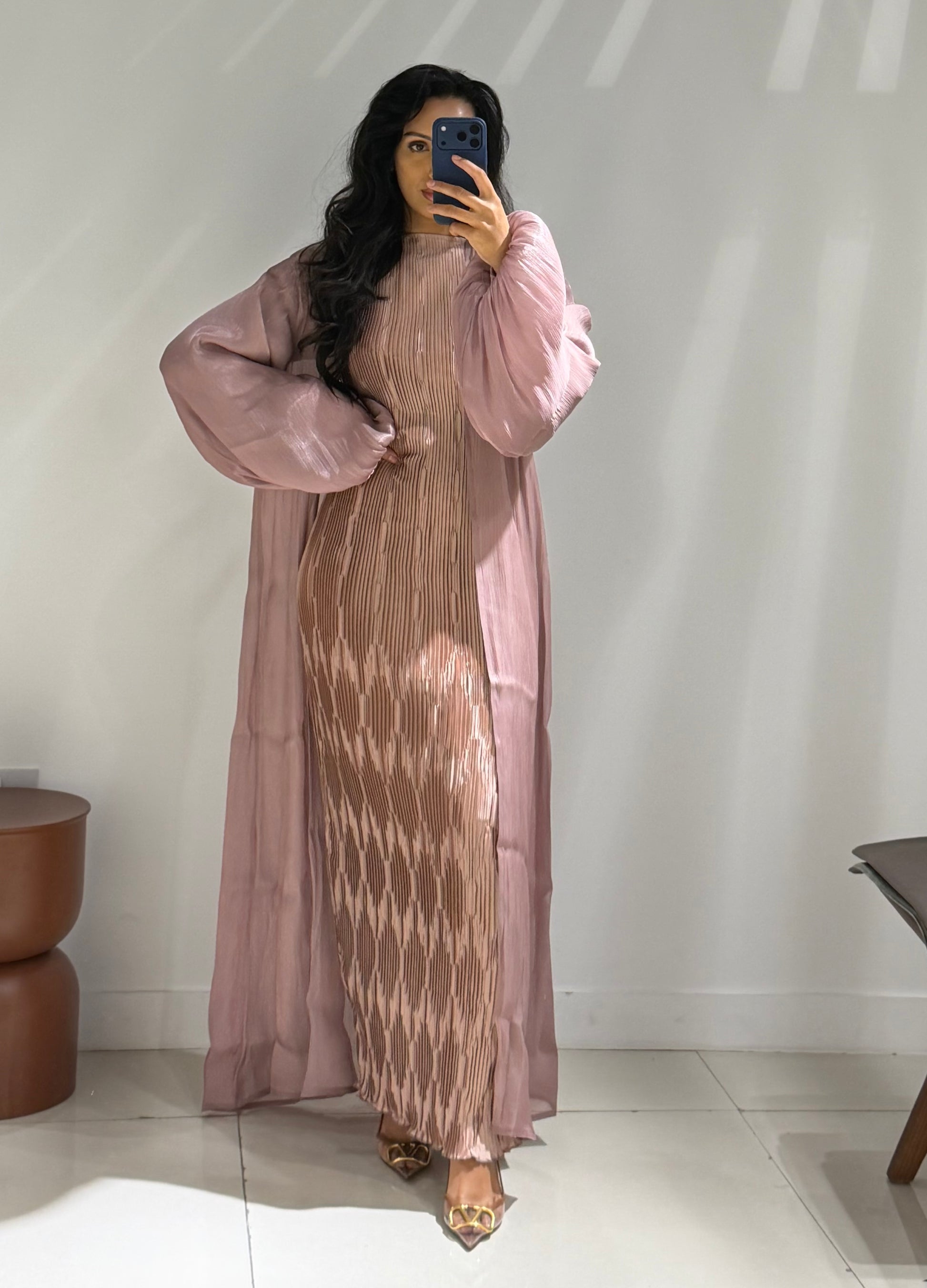 Pleated Puff Abaya set - Blush Pink